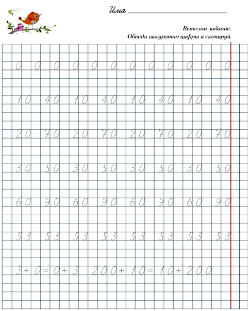 В данной таблице даны образцы начертания каллиграфически выстроенных цифр.