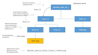 Если опускаем вниз по папкам, разделяем также через «/». Если надо подняться на уровень выше, пишем «..»