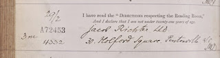 Фото 3. Рукописный текст Jacob Richter, London, 29 апреля 1902 года при получении читательского билета для работы в библиотеке Британского музея. Последнее использование зафиксировано в 1911 году.