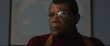 Fury’s injured left eye, though initially minimally affected by a grenade blast during World War II,[77] has over the decades resulted in a 95% loss of vision in this eye. Despite some comments to the contrary, Fury has not had the eye removed, nor bionically enhanced, and he merely covers it with a cosmetic eye-patch to prevent depth perception distortion. He has explained that when needing to disguise himself, he only needs to remove the eyepatch, slip in a contact lens and darken his hair, as everyone always looks for a one-eyed man.[78]