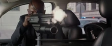 Fury has access to a wide variety of equipment and weaponry designed by S.H.I.E.L.D. technicians. He wears a S.H.I.E.L.D. uniform made of 9-ply Kevlar (able to withstand ballistic impact up to .45 caliber bullets) and a Beta cloth (type C), a fire-resistant material, which has a kindling temperature of 1,700 °F (930 °C). Fury uses various types of handguns, including a .15 caliber needle gun, a government issue .45 caliber automatic, a captured German Luger in 9mm Parabellum, a modified semi-automatic Walther PPK in 9 mm Parabellum, and the Ingram MAC-10 machine pistol in .45 ACP.[citation needed]