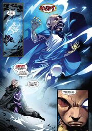 Later while the Unseen still cannot interfere with the events he is observing, he is able to summon Blink to him and tells her of things going on in the greater multiverse, terrible creatures that are destroying time, space and dimension, and tells her that she is chosen by the device to act as protector of the very fabric of the Multiverse.[68] However, due to this interference in the timestream, a faction of Watchers assaulted him with the objective of ending his involvement, even if it means the end of the Multiverse.[69]