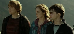 In the seventh novel, Hagrid is part of the Order of the Phoenix delegation assigned to remove Harry from the Dursleys’ home to the magic-protected Burrow. Hagrid takes Harry on the flying motorcycle he inherited from Sirius but the plan goes awry when the Order delegation is ambushed by Death Eaters. The pair narrowly make it to the Burrow after being attacked by Voldemort himself. After attending Bill Weasley and Fleur Delacour’s wedding reception, Hagrid does not appear again until near the end of the book when it is revealed he has been driven into hiding in the mountains by the new Death Eater regime at Hogwarts.