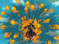 Kisame had an unusually large amount of chakra, even by Akatsuki standards.[11] Karin, upon sensing Kisame, stated she had never seen so much chakra in one place.[12] Even when he fought at 30% power in one instance,[13] Neji compared his chakra supply to that of Naruto.[14] Chōjūrō claims that Kisame was a «Tailed Beast without a Tail (尾を持たない尾獣, O o Motanai Bijū)» due to his inhuman chakra level and combination with Samehada.[15]