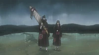 Kisame successfully managed to capture the Four-Tailed Monkey, his assigned tailed beast, without a scratch. During the following Akatsuki meeting to seal the Four-Tails, Kisame and Itachi were informed of Hebi’s formation, with Sasuke as its leader. Kisame was later told by Itachi to stand guard outside the Abandoned Uchiha Stronghold and to let only Sasuke through. After Sasuke left the rest of Hebi, Suigetsu (who was a former candidate for The Seven Swordsman of the Mist) started a fight with Kisame, wanting to claim Samehada as his own. It was later revealed that Zetsu had stopped the fight.