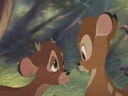 Their friendship would continue to remain strong throughout their childhood, though Bambi would still occasionally become nervous and bashful around her. Even though he may have been somewhat intimidated by her, when the situation called for it, Bambi would willingly defend her. This could be seen in him defending her from bullies such as Ronno.[2]