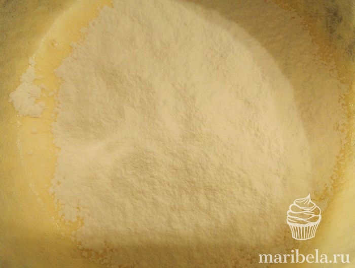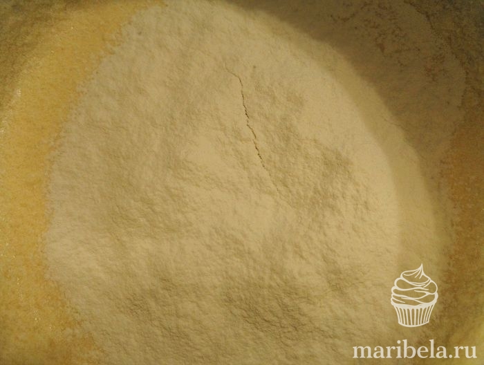 - Добавить в смесь разрыхлитель и приправы по вкусу, а затем всыпать муку строго по рецепту.
