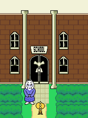In the credits sequence, Toriel welcomes Monster Kid to a school that she opened and teaches at. The school door is adorned with the Delta Rune without the triangles that represented the monsters trapped Underground.[18]