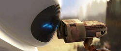 EVE is deemed faulty and taken to diagnostics. Mistaking the process for torture, WALL·E intervenes and inadvertently releases all the other faulty bots, causing him and EVE to be designated as rogues. Frustrated, EVE tries to send WALL·E home in an escape pod, but before she can, the two witness AUTO’s henchman GO-4 stowing the plant in a pod set to self-destruct, revealing that WALL·E did not steal the plant. WALL·E attempts to retrieve it, but is launched into space. EVE uses an emergency exit to chase after WALL·E, and witnesses the pod explode, although both he and the plant survive unscathed. He and EVE reconcile, celebrating with a dance in space around the Axiom.