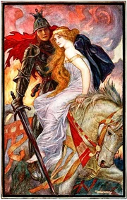 Ланселот приводит Гвиневеру к Артуру, иллюстрация к фильму Эндрю Лэнга Книга Романтики (1902)