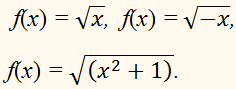 - при наличии переменной под знаком корня необходимо обращать внимание на сложение корня четной степени типа y=x+1 или y=23·x+3x;